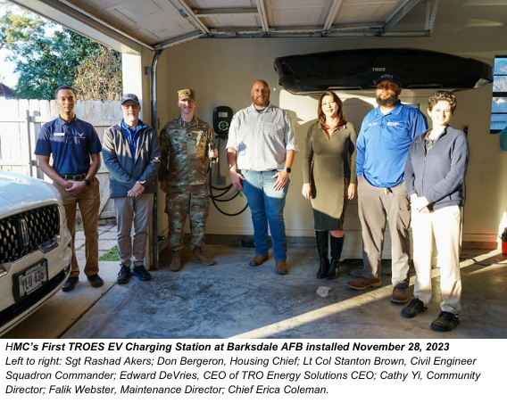 Atlanta, GA, December 19, 2023 – Hunt Military Communities (HMC), the country's leading provider of military housing, recently launched a new Electric Vehicle (EV) charging pilot program in partnership with TRO Energy Solutions, Inc. (TROES), a Virginia-based national provider of electric vehicle charging technology. The EV charging pilot program provides military housing residents in select communities with in-home Level-2 EV charging.